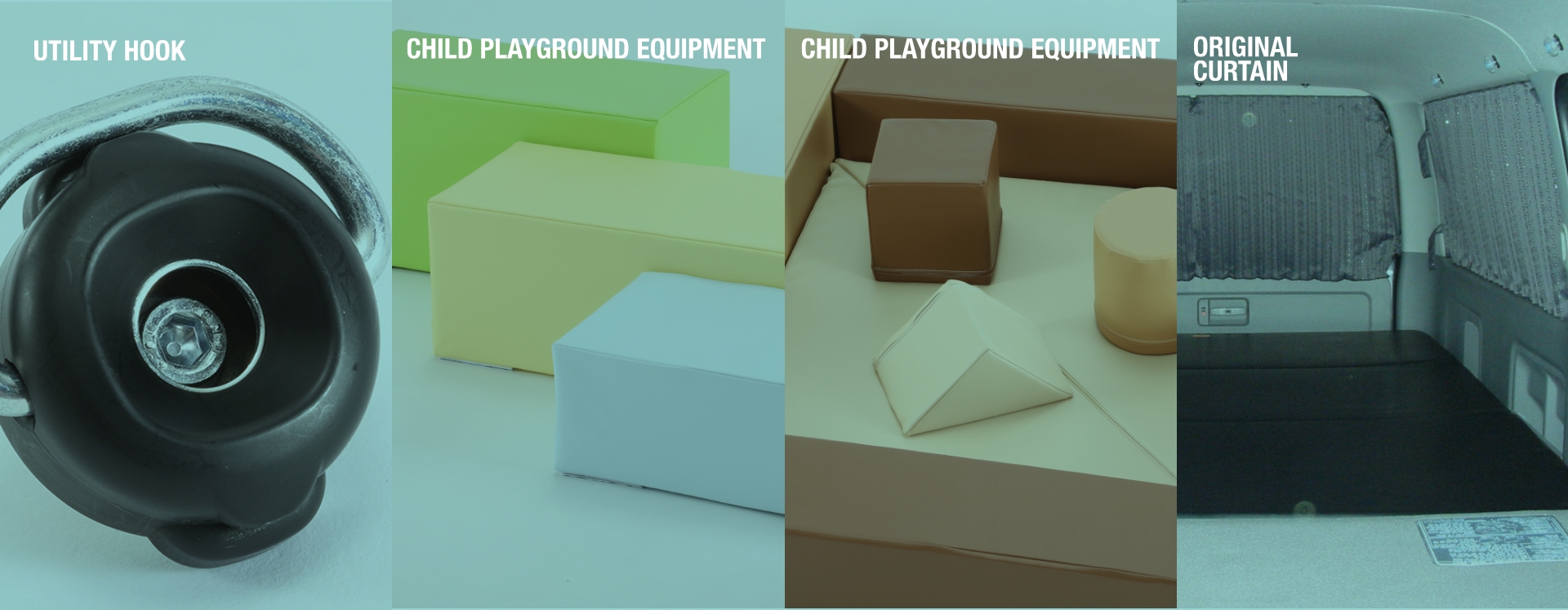 - ◆自動車用品(自動車用カーテン・サンシェード・収納用品他)の開発・設計・製造・販売
