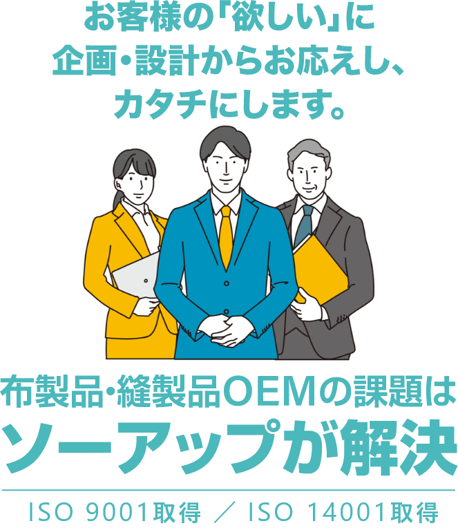 - ◆縫製加工・OEM生産(縫製雑貨、収納用品、ポーチ・バッグ類、各種カバー類の企画・開発・製造・販売)